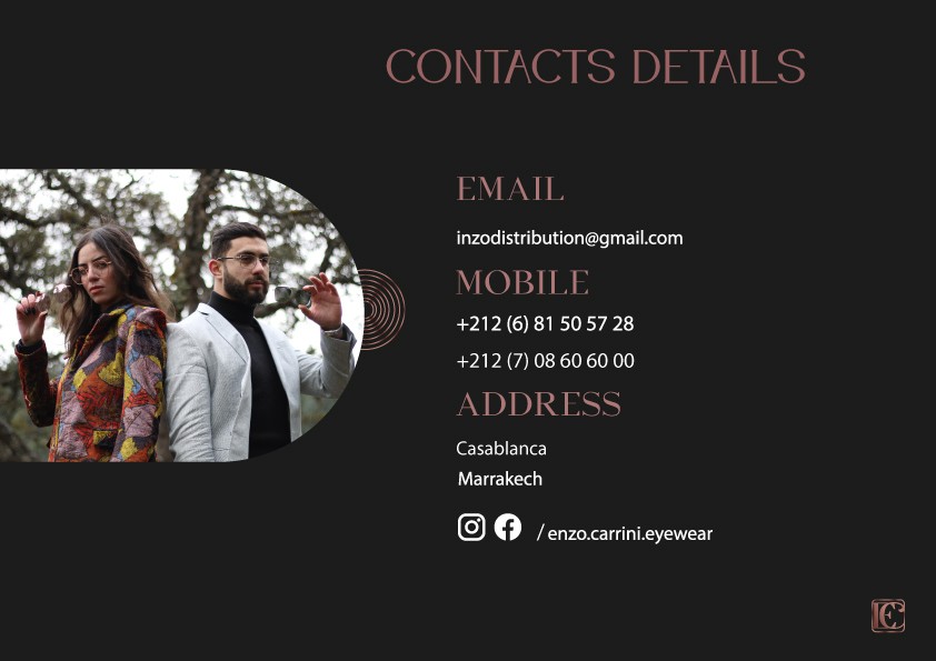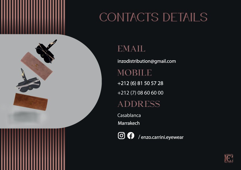 Enzo Carrini Eyewear is a premium eyewear brand poised to enter the Moroccan market, offering a curated collection of stylish, high-quality optical frames and sunglasses. The brand blends Italian-inspired design aesthetics with accessible luxury positioning